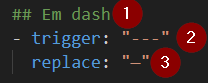 NOTE: apparently yaml (or VS Code reading yaml) doesn’t display em dashes differently from en dashes (as seen in the
